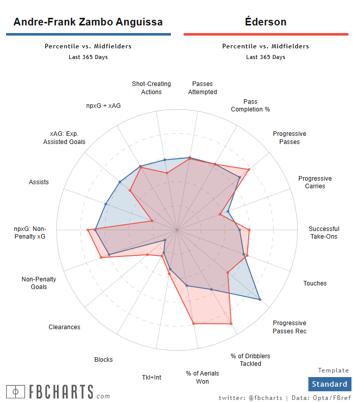 So who to go for if not Éderson? Well, looking at the list of upcoming free agents, some names align fairly well on what we may need, even just as short-term, single season investments. Andre-Frank Zambo Anguissa, for example, has been a storming success for Napoli in recent years, and the 29 Year Old compares even better statistically than Éderson does in terms of creativity.